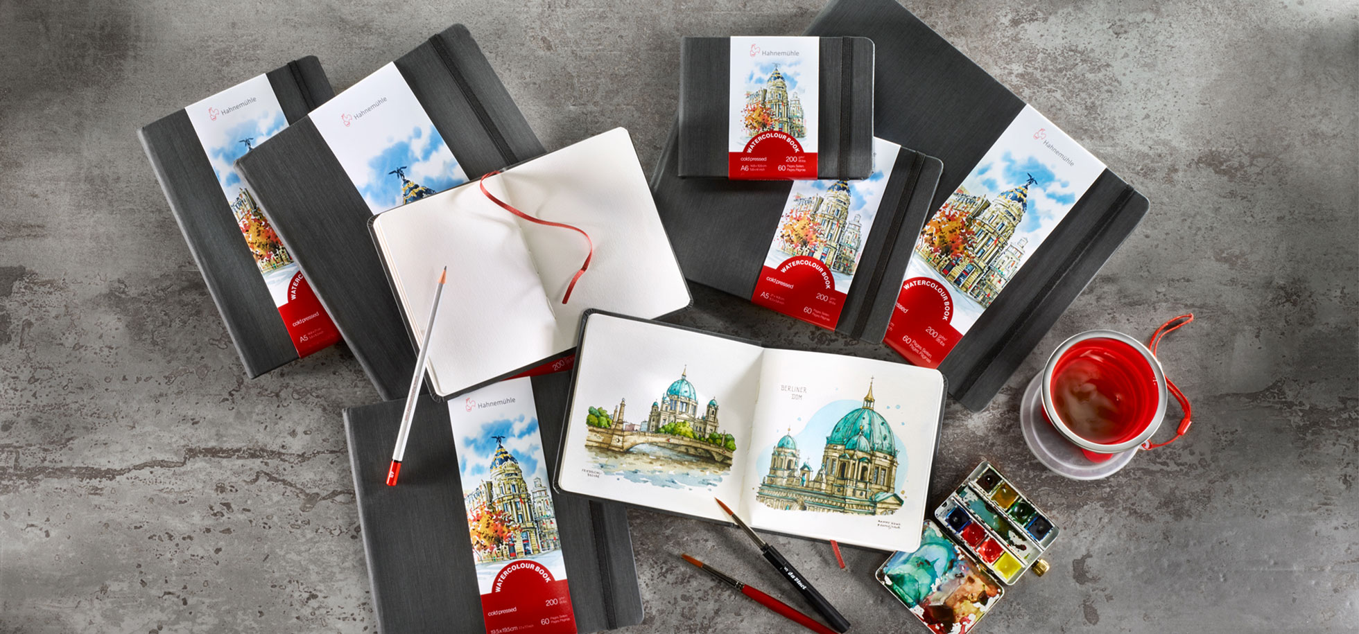 Mit 60 Seiten / 30 Blatt nimmt das Aquarellbuch nur wenig Raum ein und bietet dennoch ausreichenden Vorrat selbst für längere Reisen. Der Einband ist feuchtigkeitsabweisend; eine Gummibanderole verhindert ungewolltes Öffnen.